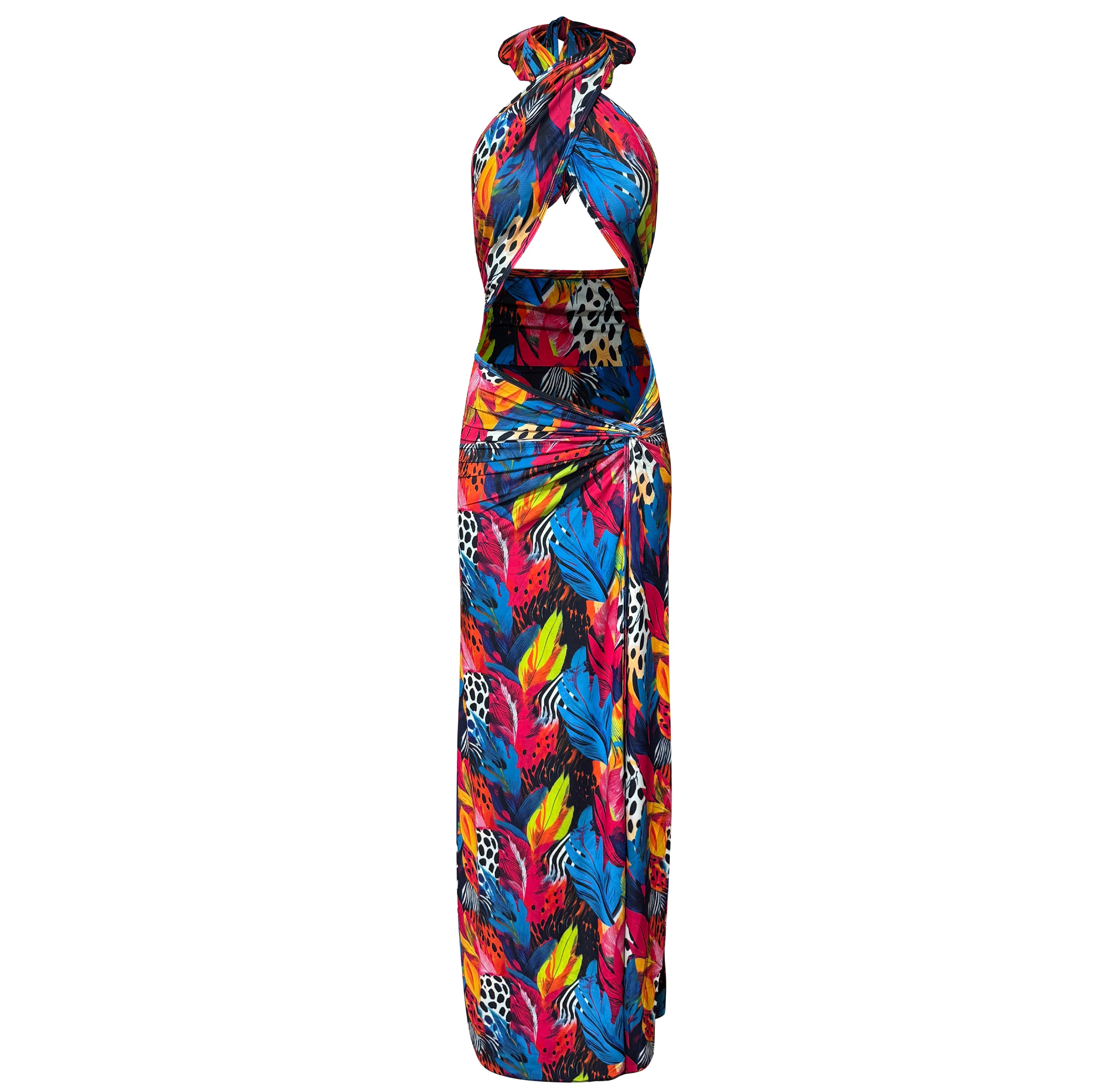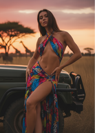 Mesh Wrap Front Side Slit Dress in Sunset Safari