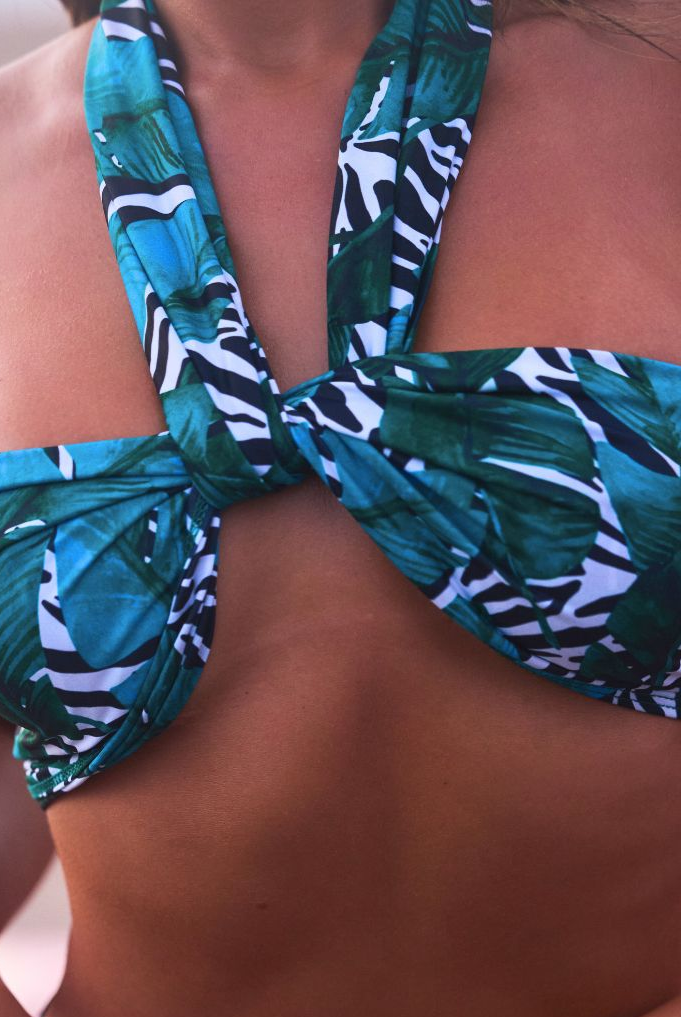 New thick, luxe St. Tropez fabric has a crinkle look with metallic gold fibers running through it, for that ultra high end feel and look. Our Drea Ring Center top ties behind the neck with sliding sides for adjustability. Full lined with opening for your own padding. Add padding for $5.