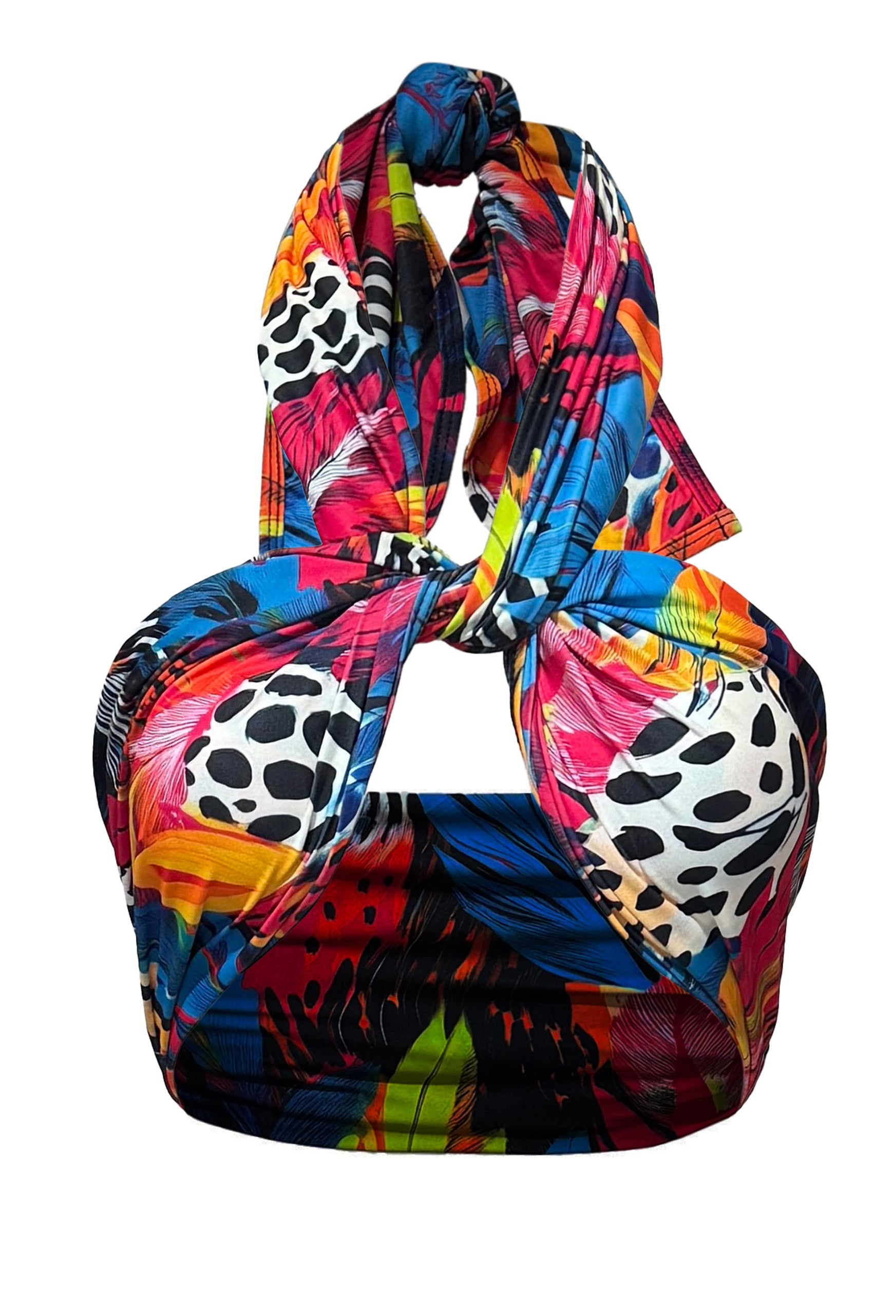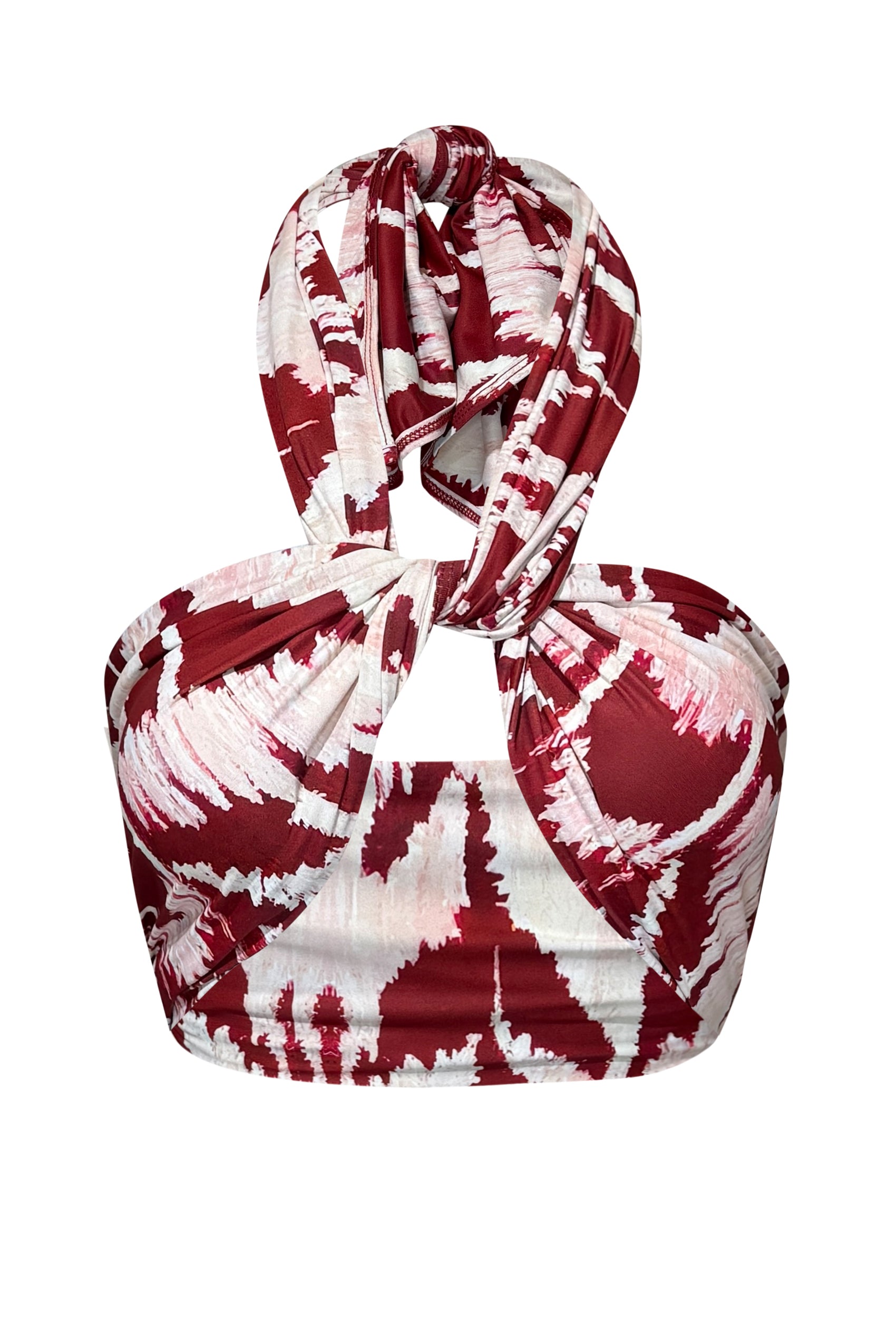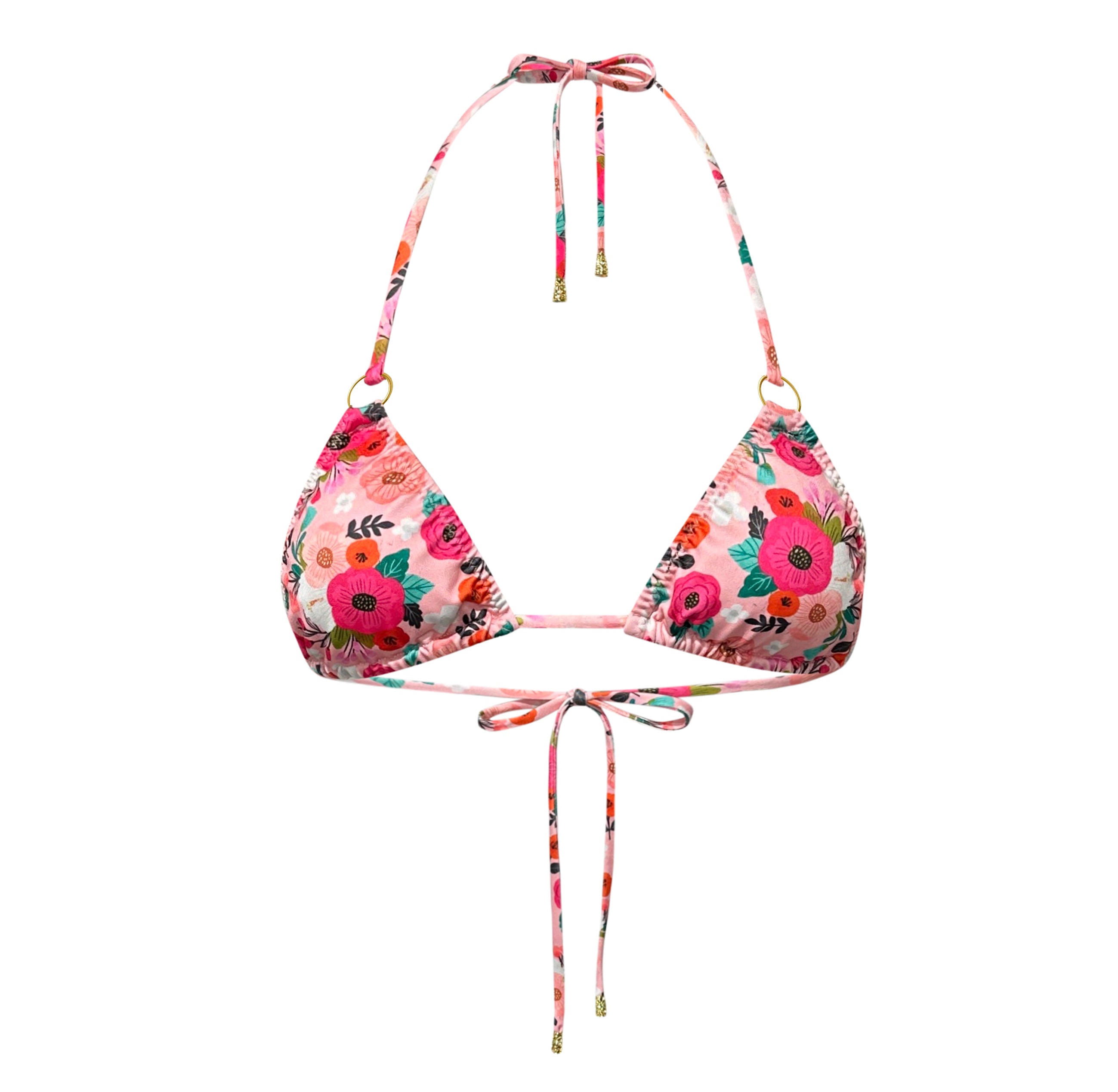 Our Triangle Top with gold ring detailing is fully lined with opening for your own padding. Ties behind the neck and back.